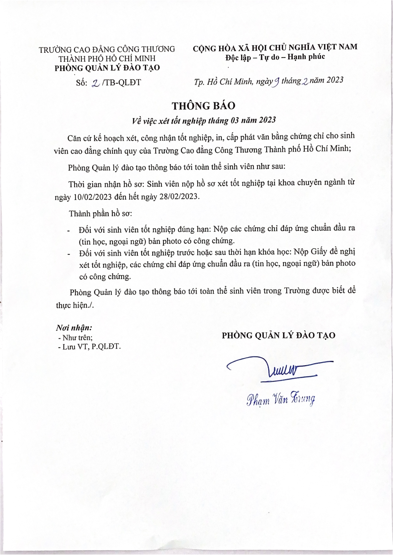 3. Thông báo xét tốt nghiệp tháng 3 năm 2023