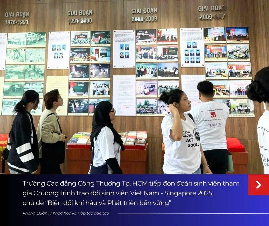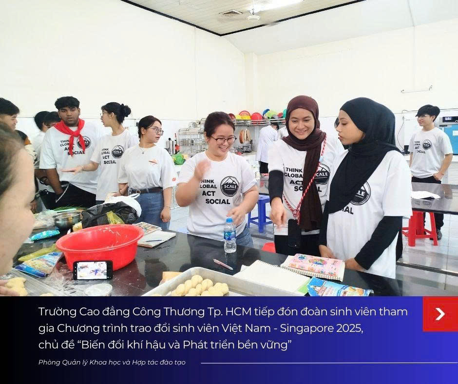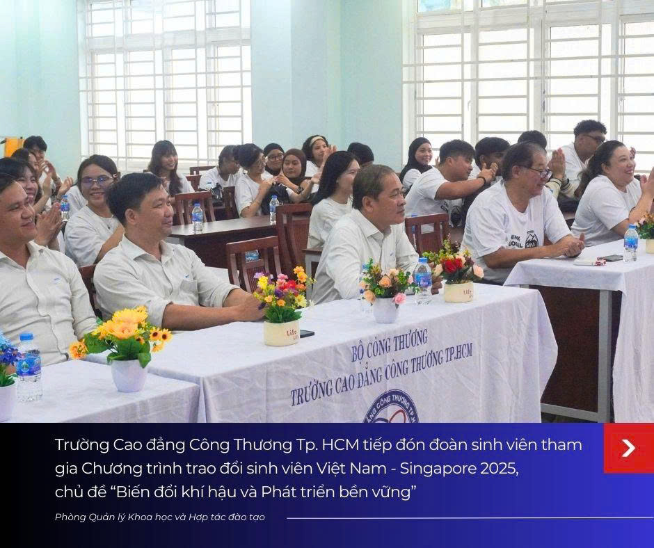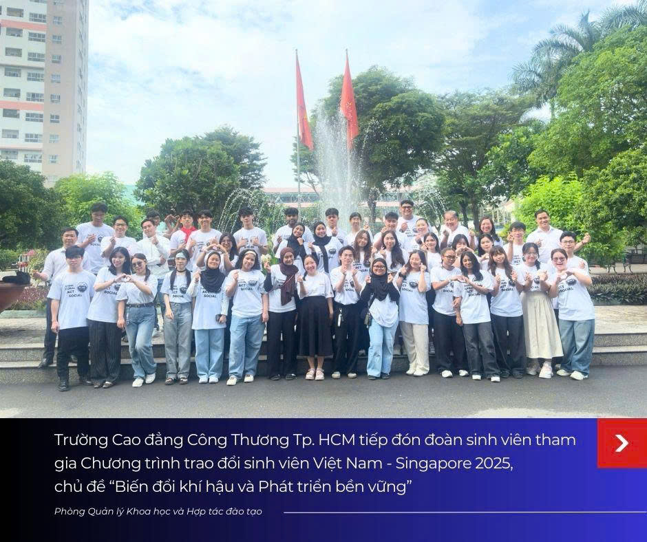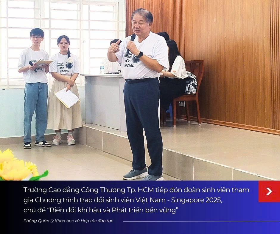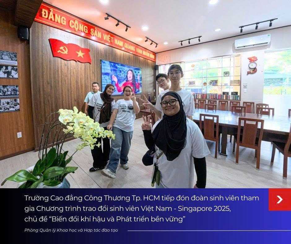 Sáng ngày 11/12/2025, Trường Cao đẳng Công Thương TP.HCM đã long trọng tiếp đón đại diện Viện Giáo dục Kỹ thuật ITE cùng 20 bạn sinh viên đến từ Singapore trong khuôn khổ Chương trình Trao đổi Sinh viên Việt Nam – Singapore 2025 với chủ đề “Biến đổi khí hậu và Phát triển bền vững”.